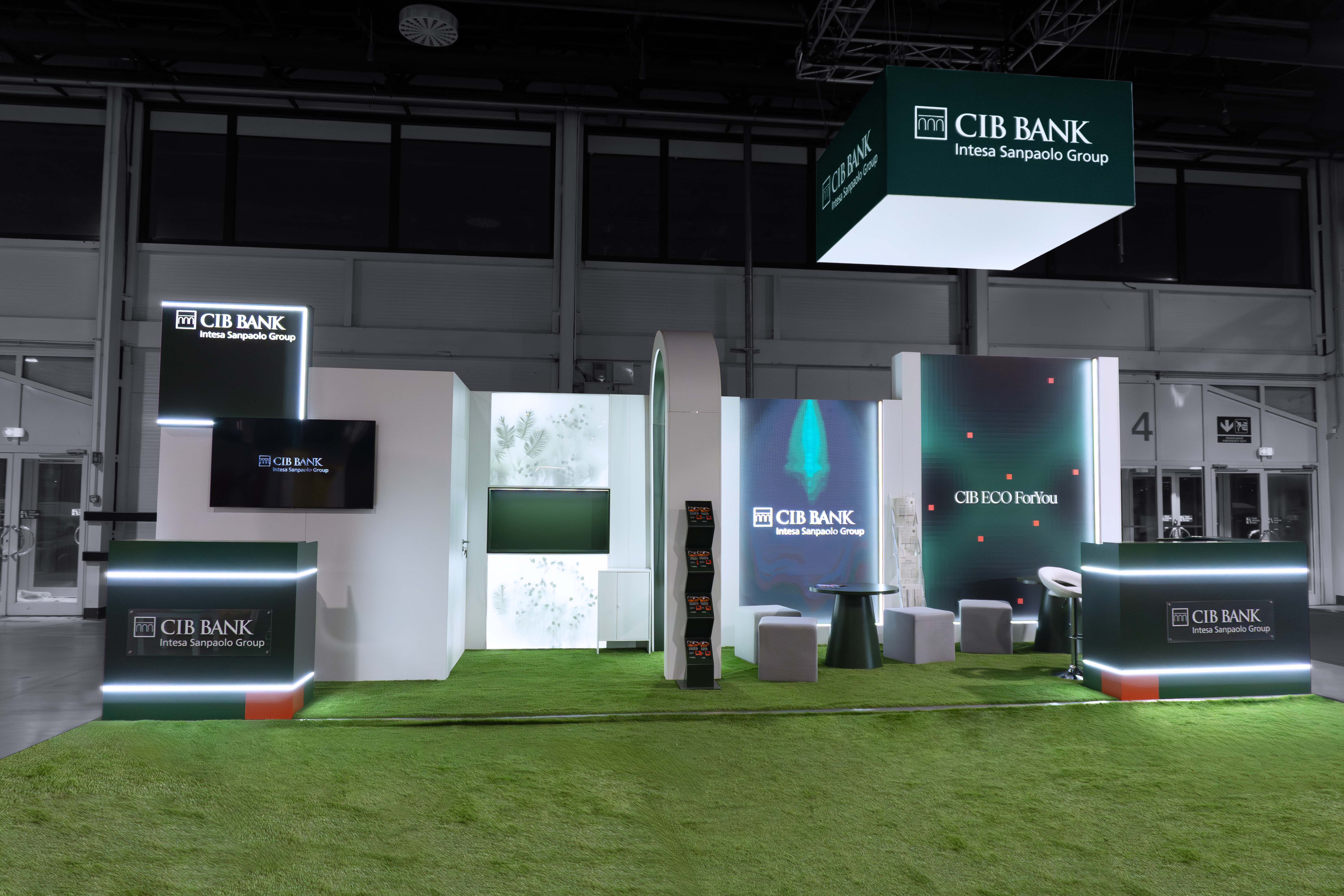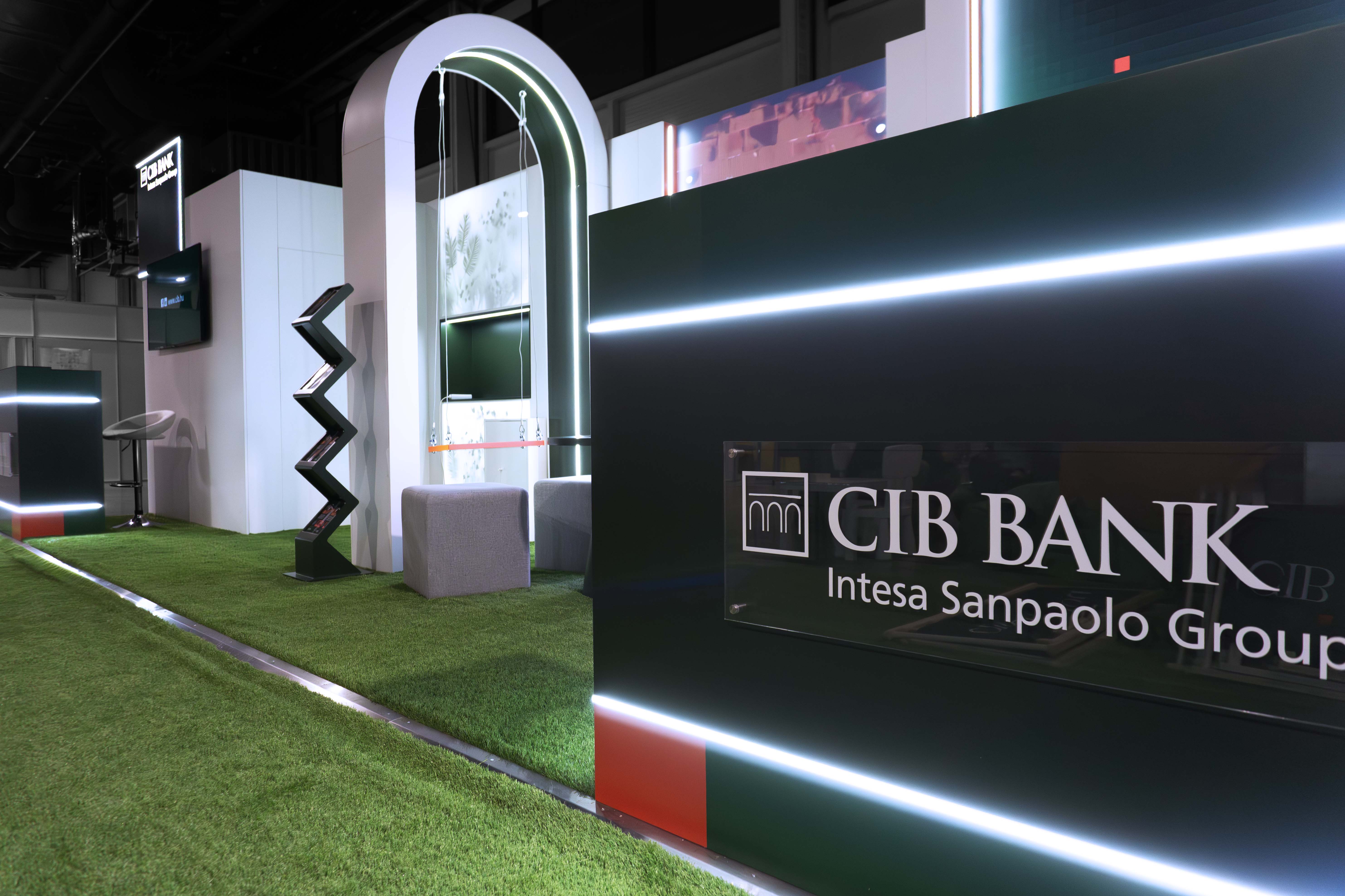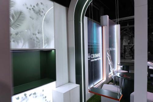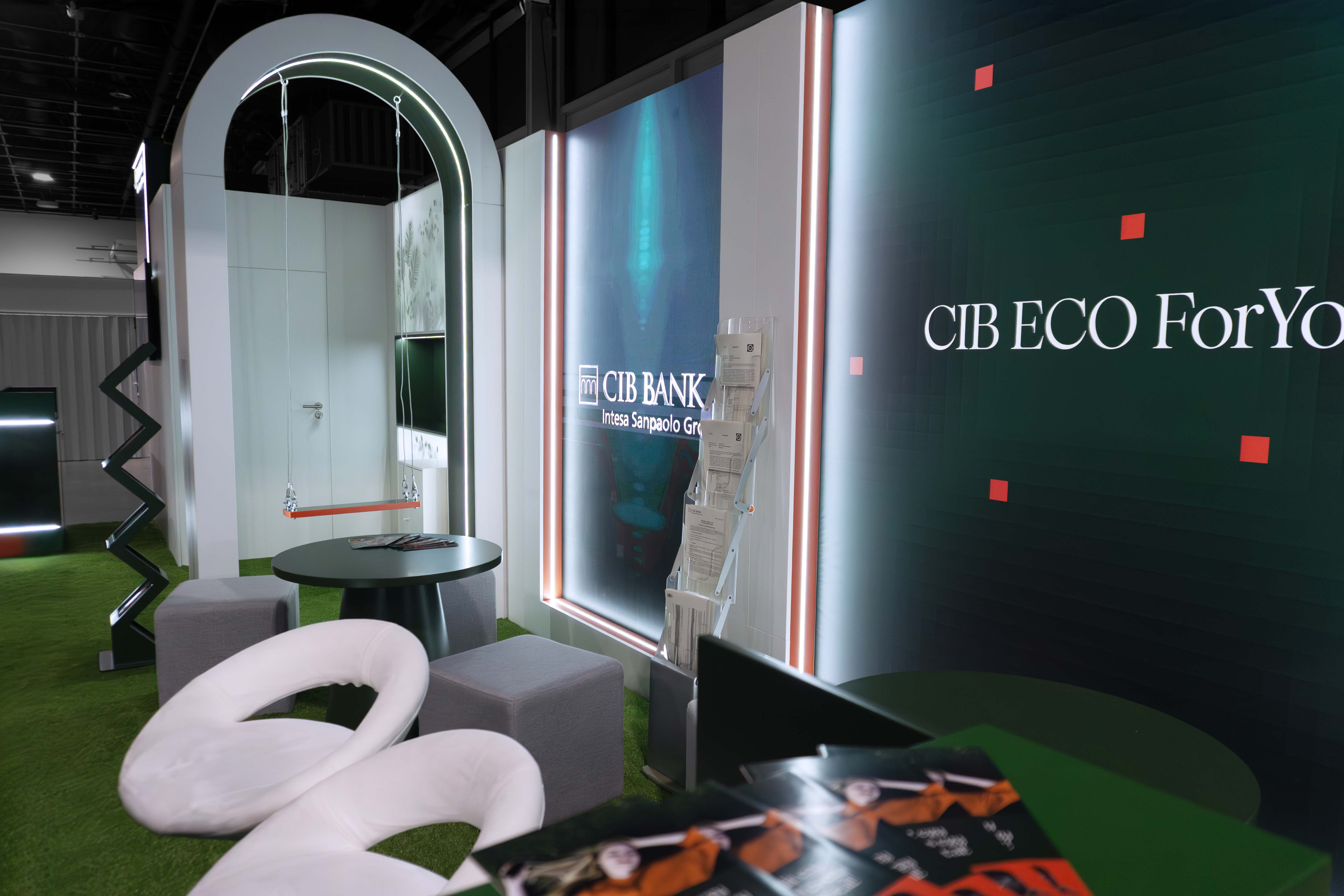 At the Educatio International Education Exhibition 2026, the CIB Bank interactive stand created a truly memorable experience for students. In a 9×3 meter space, LED walls, illuminated surfaces, custom round tables, artificial grass, a green light wall, and an iconic curved swing shaped a playful and engaging environment.